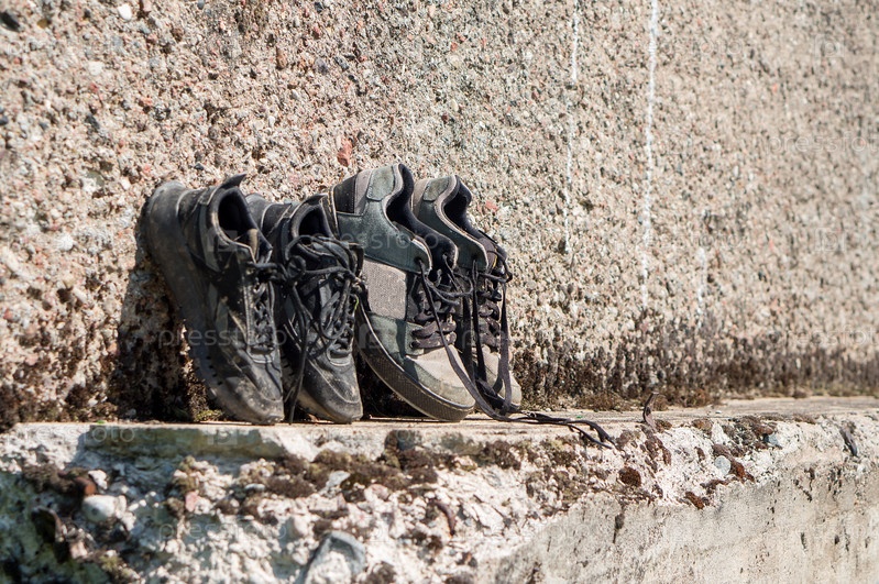 Кемпинговая обувь. Промокшая обувь сушится на солнце