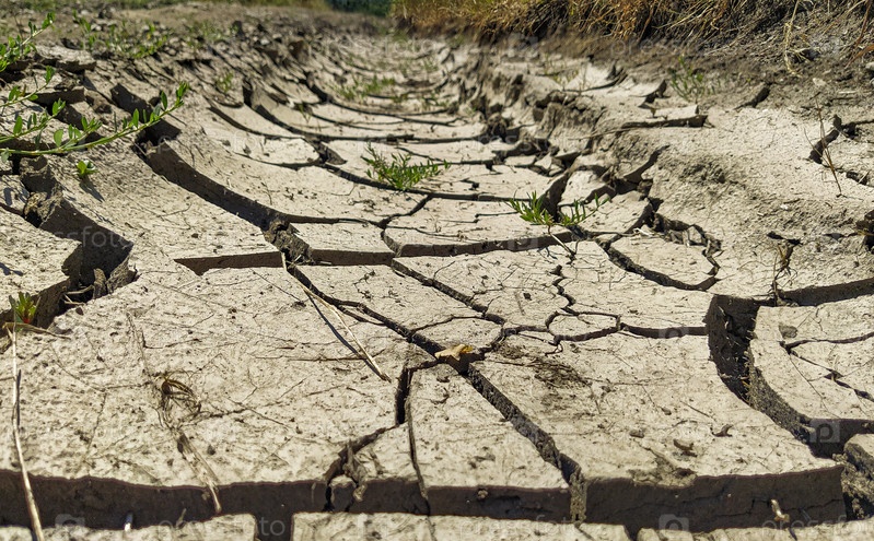 Засуха. Высохшая земля с трещинами под летним солнцем