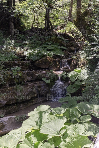 Быстрая горная река течет в солнечный летний день (Греция)