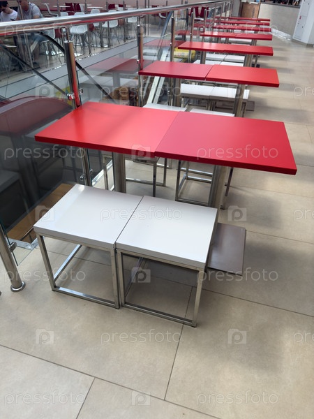 Красные столы в кафе пусты