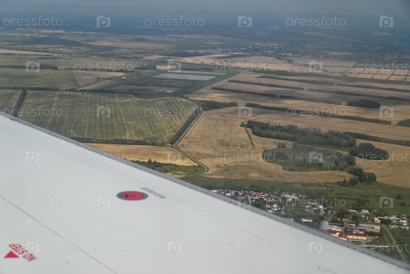 Коммерческий самолет во время полета против ясного голубого неба в движении с копировальным пространством. Глядя в окно самолета