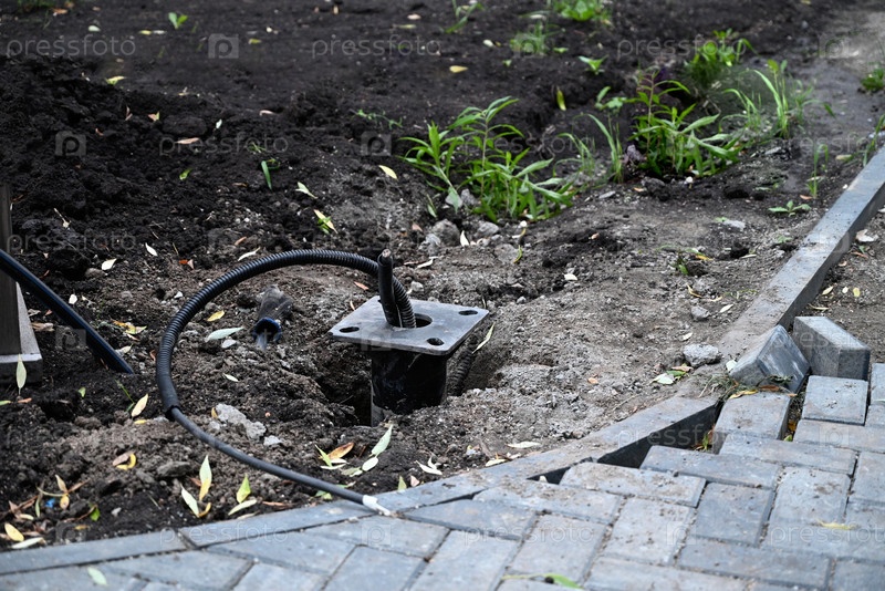 Новый электрический кабель в земле