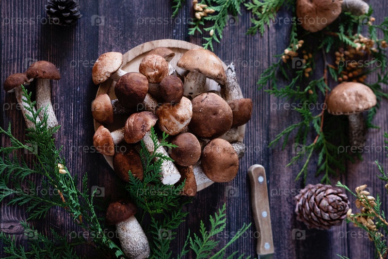 Корзинка со съедобными белыми грибами. Белый гриб. Собрать белые грибы в лесу