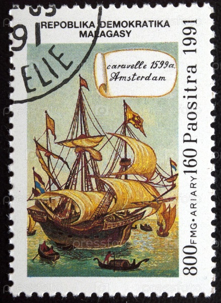 Почтовая марка с гашением Мадагаскар 1991 год. Каравелла Амстердам (1599)