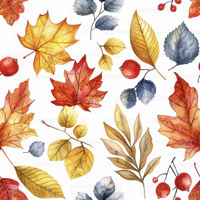 Акварельные картинки осенние листья клена и дуба, рябины и каштана на белом фоне