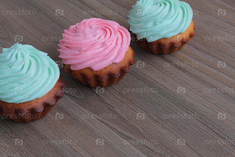 Три кремовых торта разных цветов. Встаньте в ряд