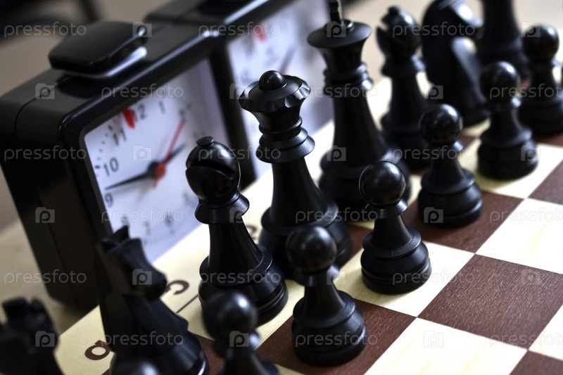 Шахматная доска и шахматные часы. Шахматные соревнования