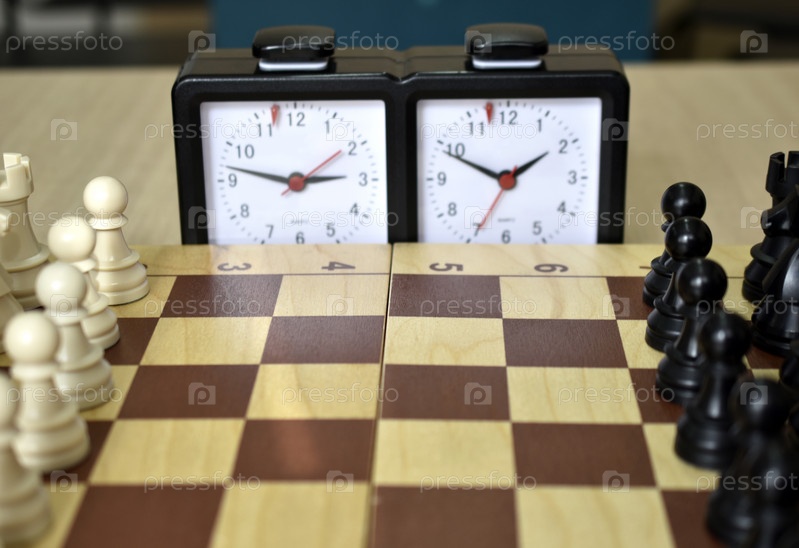 Шахматная доска и шахматные часы. Шахматные соревнования