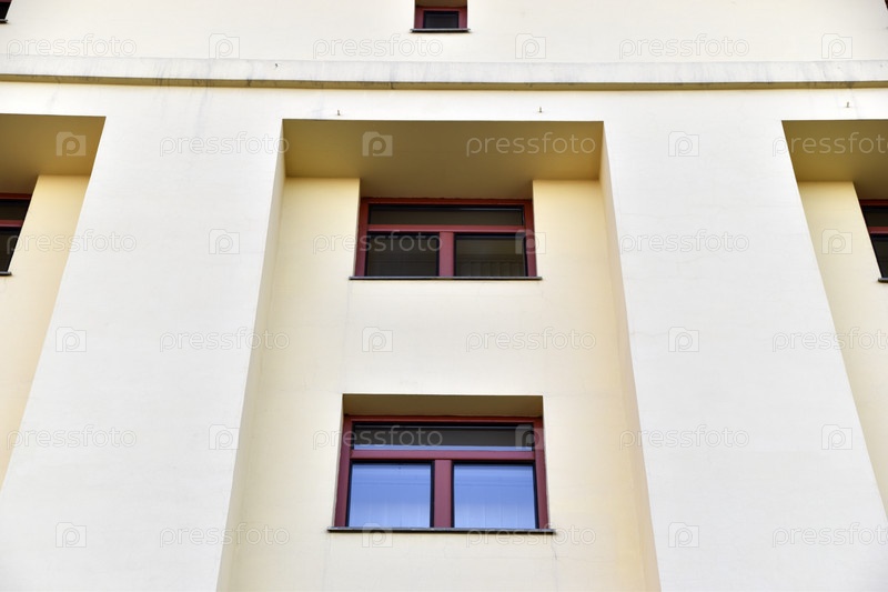 Красное окно на желтой стене. Красивое окно в классическом здании