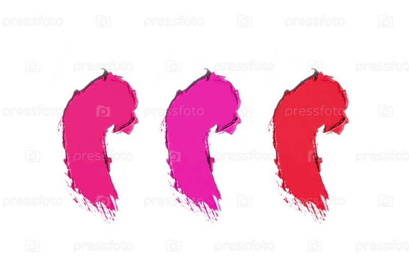 Набор пятен жидкой помады, выделенных на белом фоне. Блеск для губ и мазки помады. Образцы макияжа. Косметические мазки продукта. текстура, размазанная палитрой
