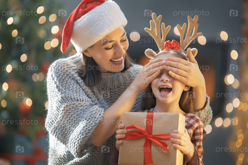 Семья празднует Рождество