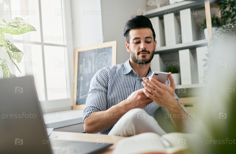 Мужчина работает на ноутбуке дома