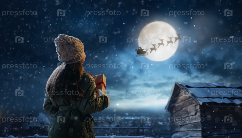 Девушка с подарком на Рождество