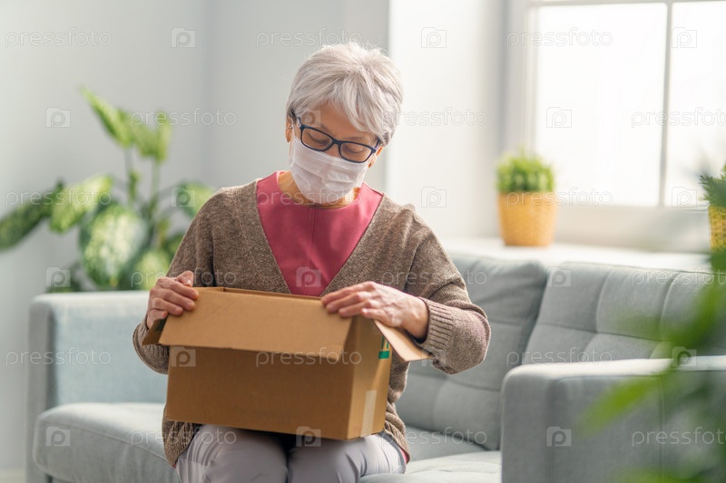 Женщина держит картонную коробку