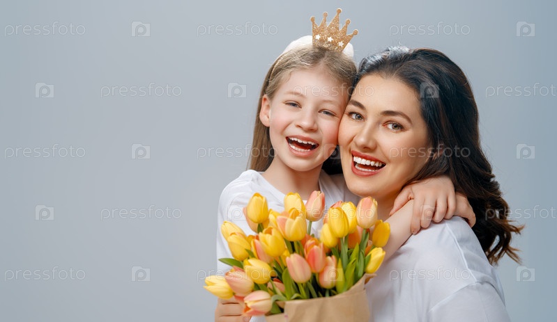 Дочь и мать с букетом цветов