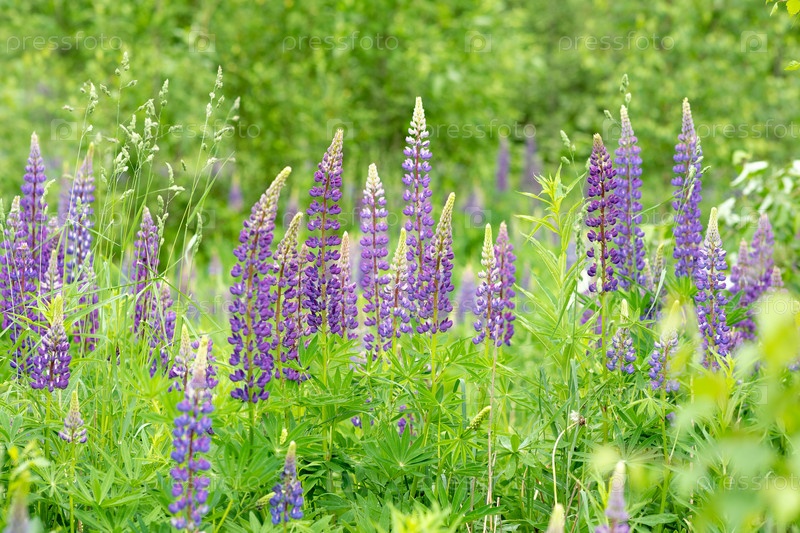 Дикие цветы люпина на лугу. Природный фон