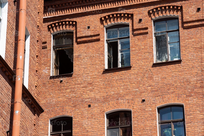 Окна старого кирпичного дома XIX века