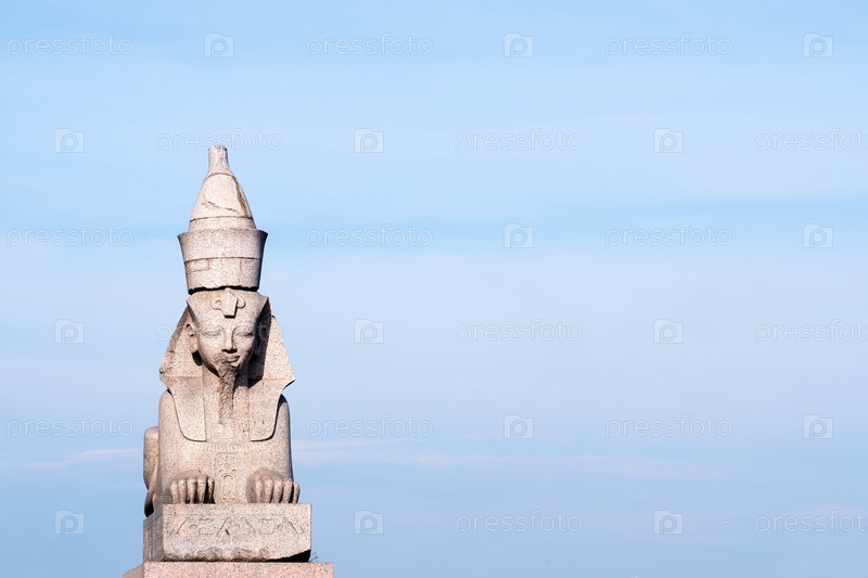 Поврежденная античная статуя древнего египетского сфинкса на фоне неба, фон с копировальным пространством