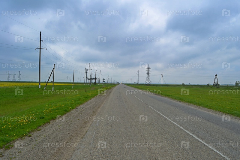 Пустая дорога между полей весной