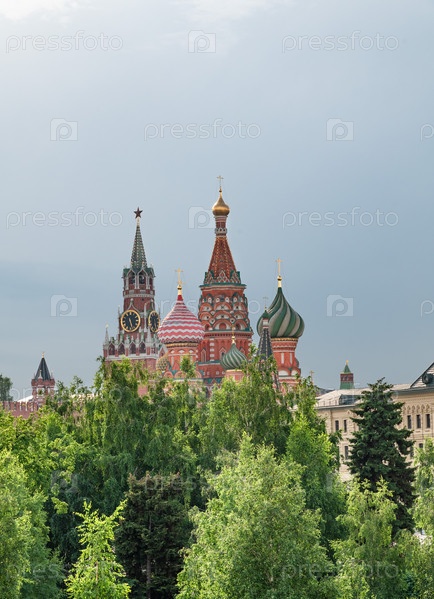 Вид на Кремль и Храм Василия Блаженного из парка Зарядье