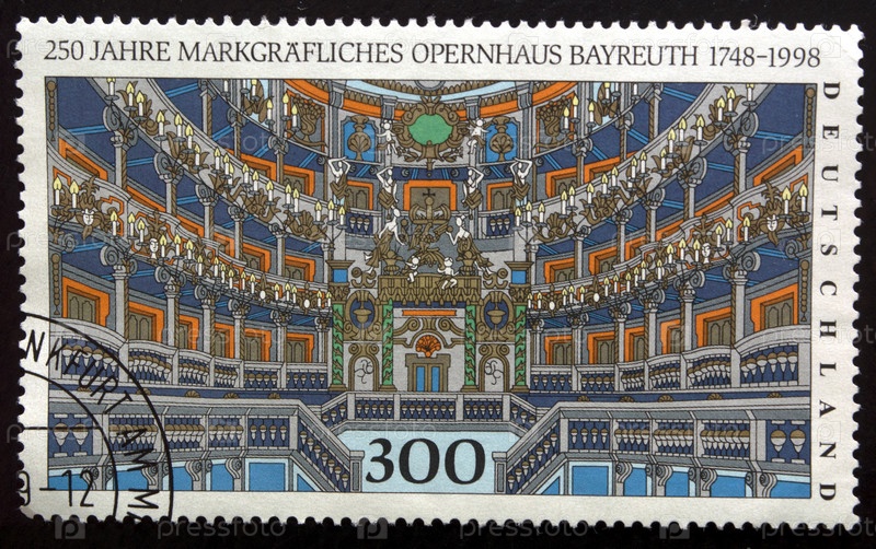 Почтовая марка с гашением Германии 1998 года. 250-летие Байройтского оперного театра