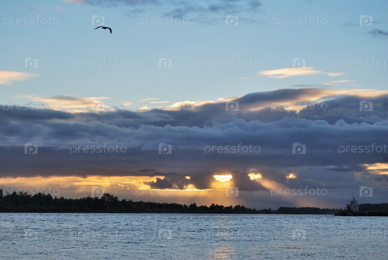 Вечер на реке Иртыш, Омская область, Сибирь, Россия
