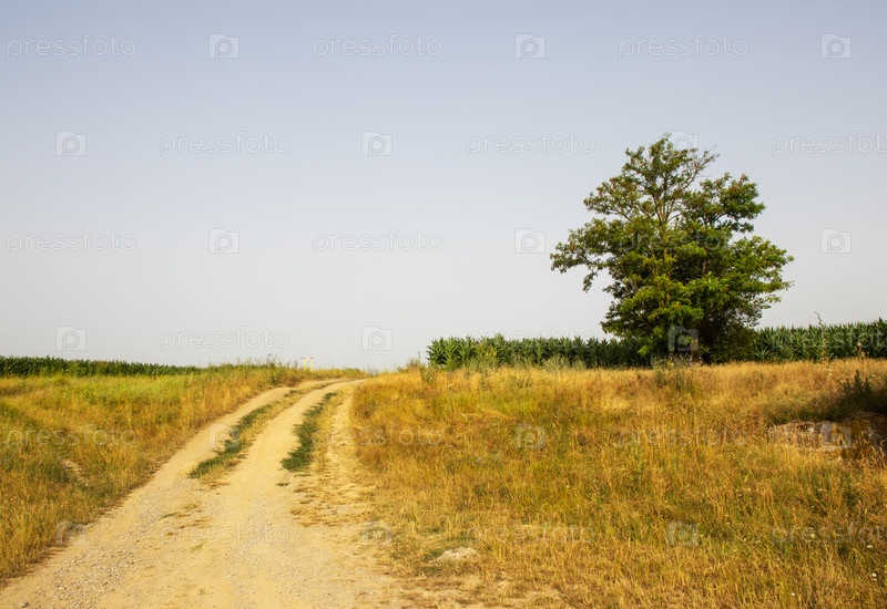 Грунтовая дорога в поле кукурузы
