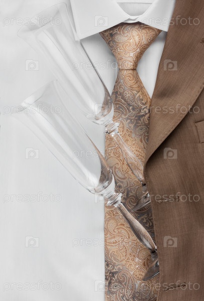 Два стакана лежат на куртке и рубашке