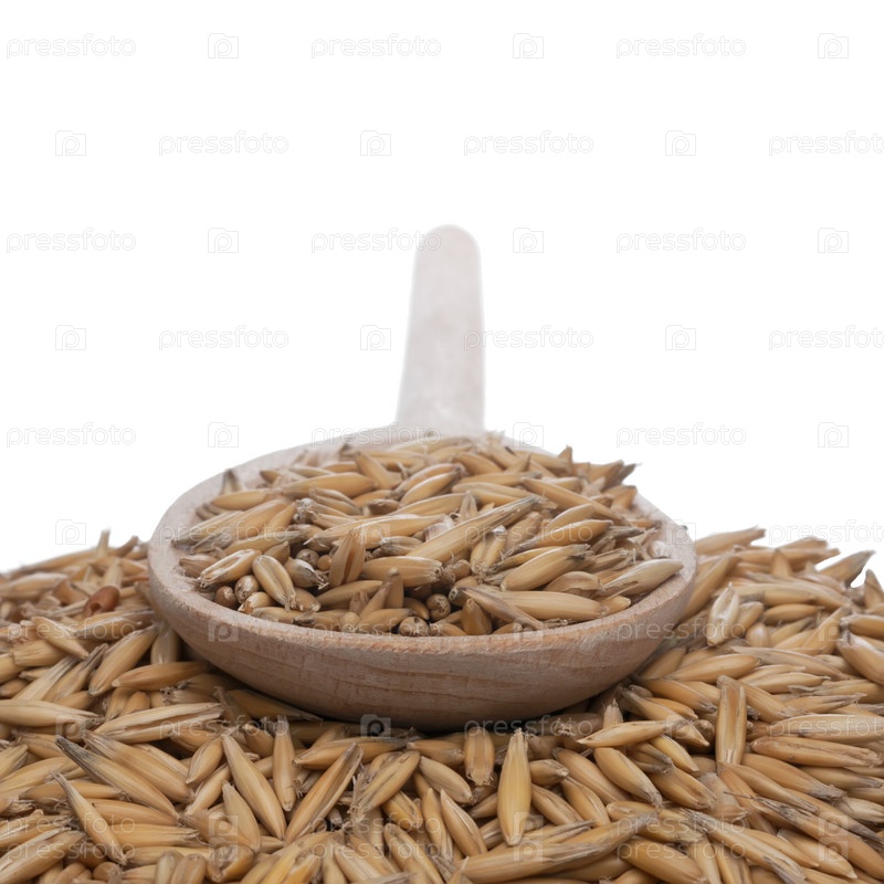 Деревянная ложка с овсом лежит среди пшеницы