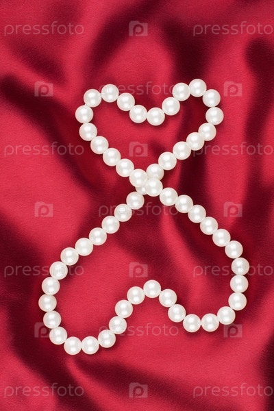 Два символических сердца на красной ткани