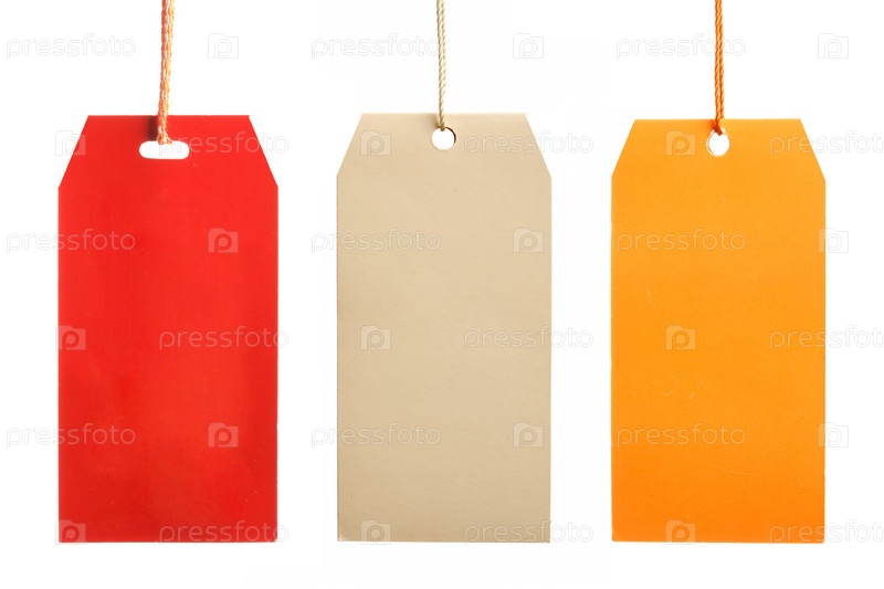 Три цветные бумажные этикетки на белом фоне