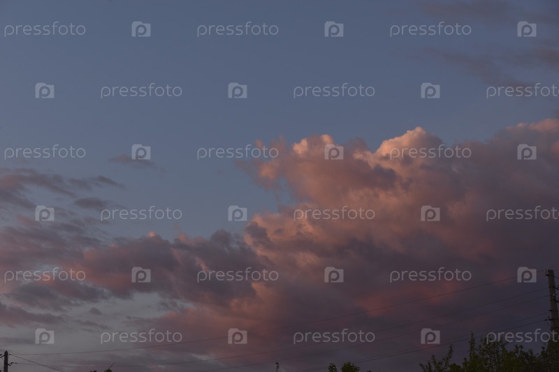 Розовые и белые облака в вечернем летнем небе. Кучевые облака