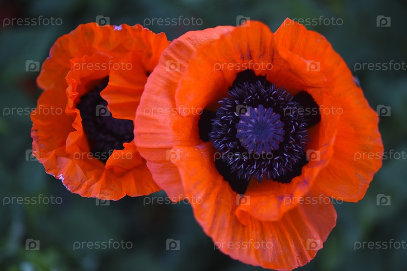 Красные цветы мака в летнем саду. Красный мак на зеленом фоне