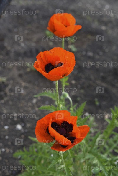 Красные цветы мака в летнем саду. Красный мак на зеленом фоне