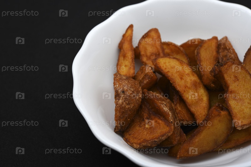 Деревенский картофель в тарелке. Вкусный жареный картофель