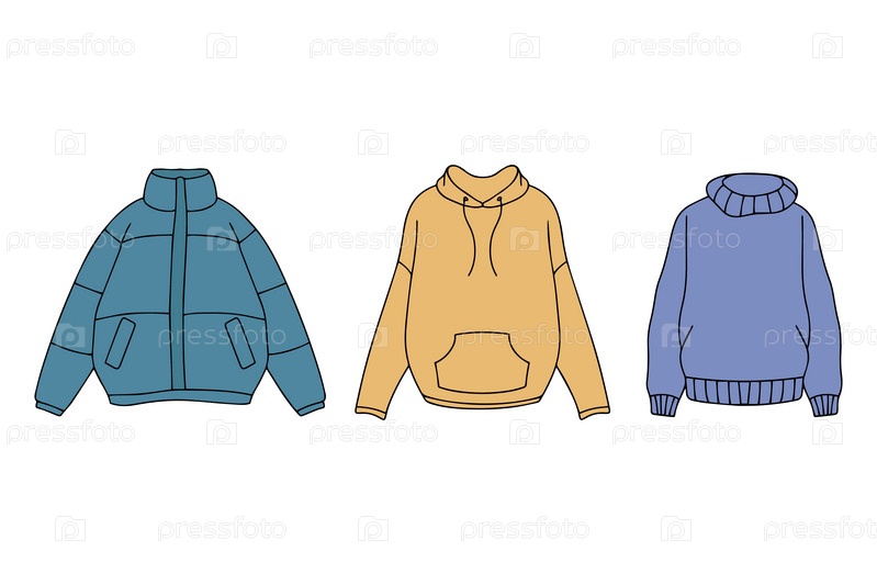 Коллекция рисованной осенне-зимней одежды. Куртка-свитер-толстовка в стиле каракулей