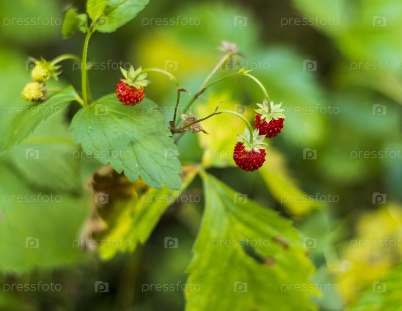 Выстрел земляники в лесу. Природа
