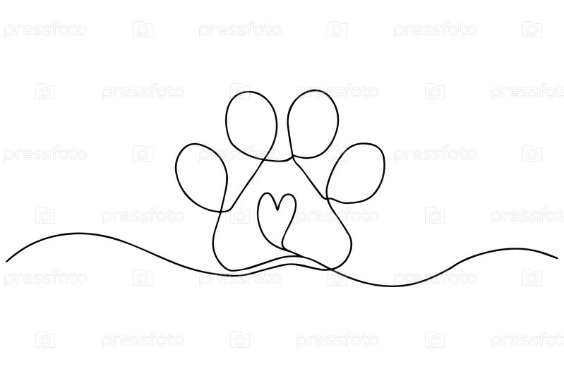 Отпечаток собачьей лапы с сердцем внутри. Концепция ухода за домашними животными и любви владельцев домашних животных. Печать на открытках, футболках, детской одежде и игрушках. Логотип для магазина игрушек, детской одежды, зоомагазина
