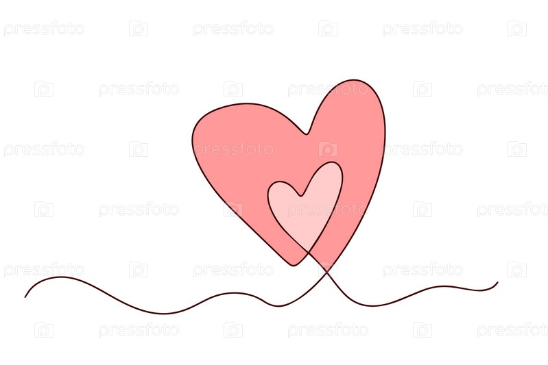 Непрерывный однолинейный рисунок любовного знака с двумя сердцами. Линия рисует два сердца, минималистская иллюстрация концепции любви. Векторная иллюстрация