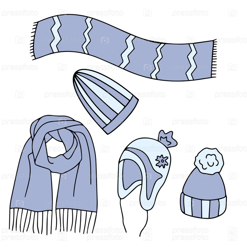 Векторная коллекция теплой осенне-зимней одежды. Сезонные элементы дизайна. Вязаные аксессуары. Векторная иллюстрация