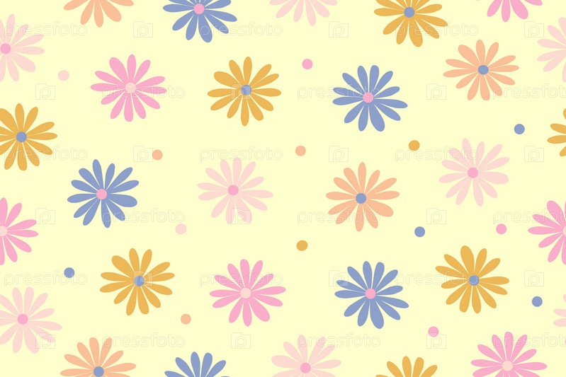 Садовые цветы, растения, ботанический, бесшовный векторный дизайн для моды, тканей, обоев и всех принтов. Маленькие яркие цветы. Векторная иллюстрация