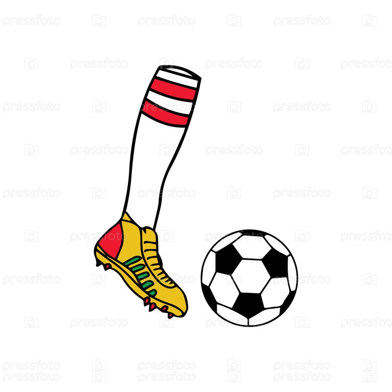 Футболист пинает векторную иллюстрацию мяча. Футболист забивает гол. Концепция футбольного спорта и командной игры. Векторная иллюстрация