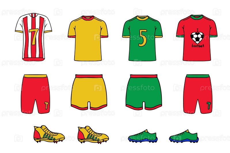 Модная спортивная одежда и обувь в стиле каракулей. Активная футболка и шорты для волейбола, футбола, бадминтона, баскетбола и других видов спорта. Комплект спортивной формы. Векторная иллюстрация