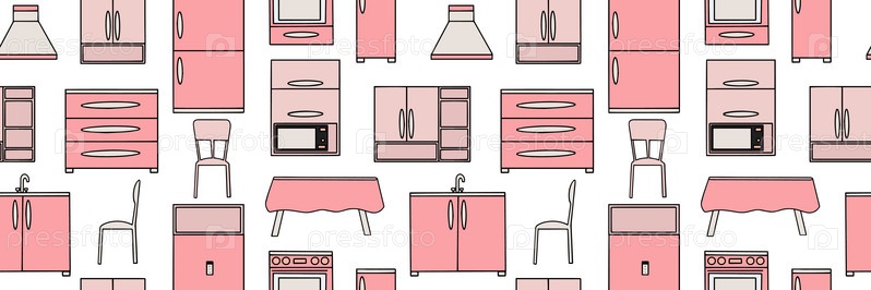 Бесшовный узор из розовых и кухонных элементов. Розовый игрушечный дизайн кухни-кухни. Векторная иллюстрация. Вектор
