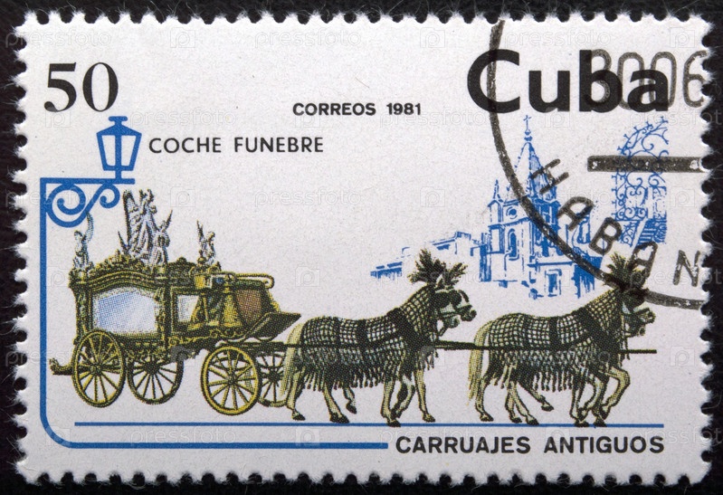 Почтовая марка с гашением Куба 1981 год. Катафалк