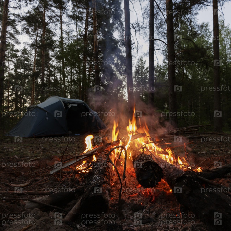Туристический костер в лесу