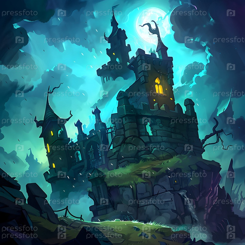 Художественная концепция картины дома с привидениями, фоновая 3d иллюстрация