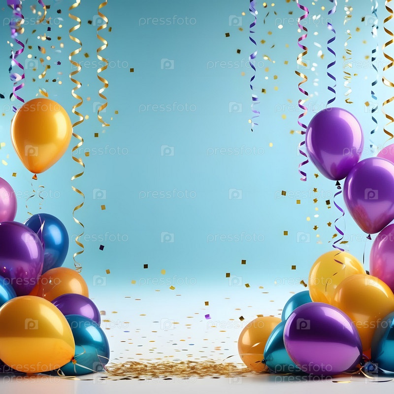 Вечеринка с синими воздушными шарами на синем фоне