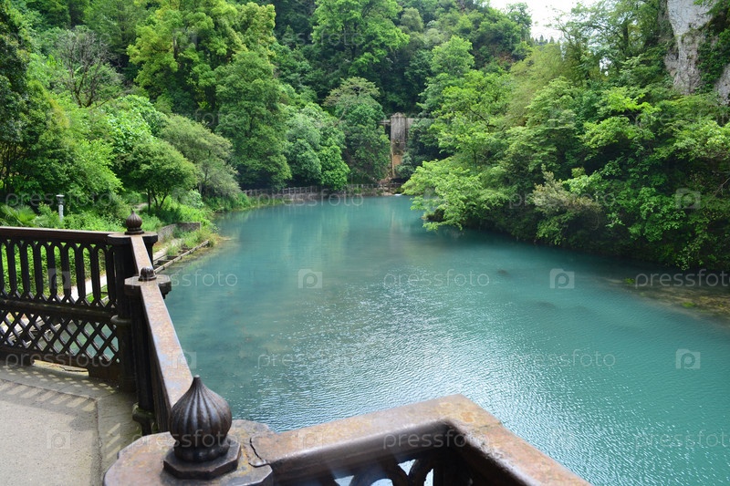 Железнодорожная станция Псырцха в Новом Афоне Абхазии над рекой среди леса