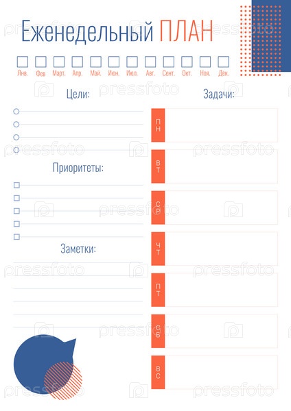 Шаблон страницы еженедельного плана с местом для текста под формат А4